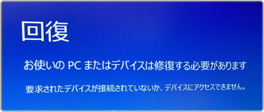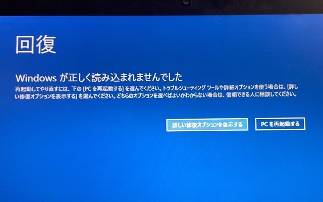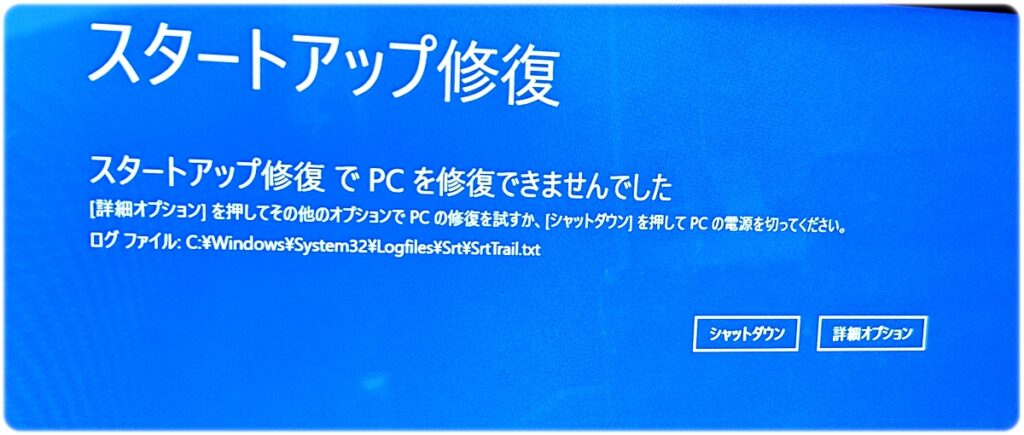 - 英語で「Automatic Repair」「Your PC ran into a problem」などと出る